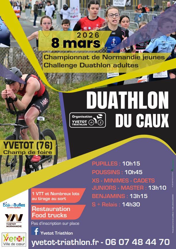 La team du Yvetot Triathlon est heureuse de vous retrouver le 8 Mars 2026 à Yvetot pour une nouvelle édition du Duathlon du Caux.