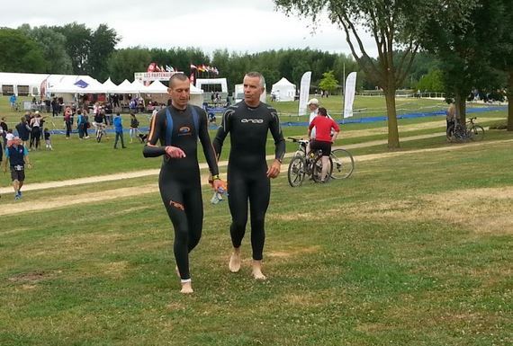 Dimanche 21 Juin , Samuel Bance et Philippe Bonniec ont participé au triathlon de Beauvais sur le format L ( 1.9Km / 90Km / 21Km ). Les 2 triathlètes Yvetotais réalisaient pour leur premières fois une compétition de triathlon sur ce format. Samuel sorti du plan d’eau en parcourant les 1.9km de natation en 39’ à la 203ème place, suivi de Philippe en 50’. Sur le parcours vélo, Philippe commençait sa remontée fantastique en remontant 70 concurrents, il réalise un temps de 2h57 sur les 90km, Samuel posa le vélo en 3h10 à la 233ème place. Sur le semi-marathon, Philippe concluait cette compétition en courant le semi-marathon en 1h30 ce qui le place au final à la 139ème place ! Samuel finissait ce triathlon en 6h07 à la 241ème place. Bravo à eux pour ce baptême !