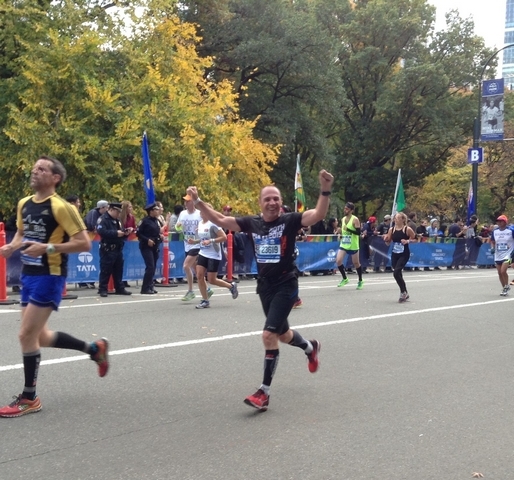 Colombus Circle, rentrée dans Central Park pour la dernière ligne droite, ma chérie est là et s’étonne de me voir déjà, petite vidéo, ligne d’arrivée 3h36mn10. Quelle perf ! Mon record était de 3h54’ et NYC est un marathon difficile (les Kenyans font #2h10).